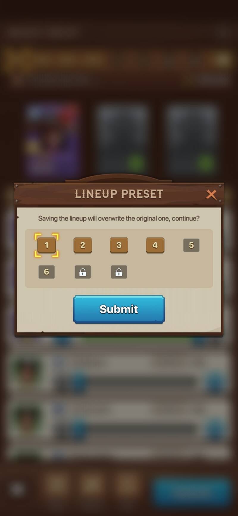 In this screen select the formation you want to save. Select your troops and heros separately.